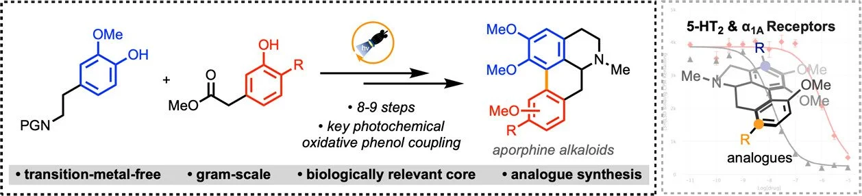 Total Synthesis of Aporphine Alkaloids via Photocatalytic Oxidative Phenol Coupling and Biological Evaluation at the Serotonin 5-HT2 and Adrenergic α1A Receptors
